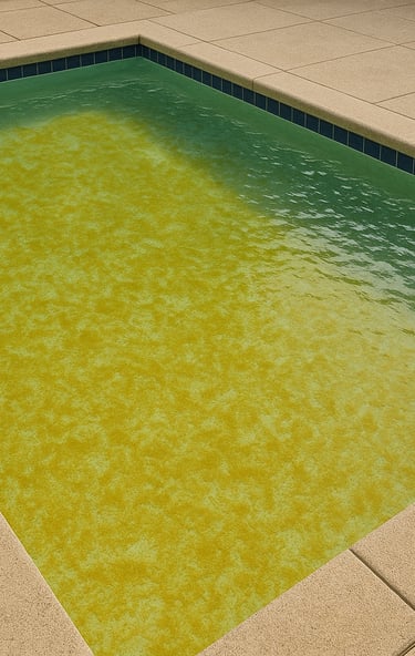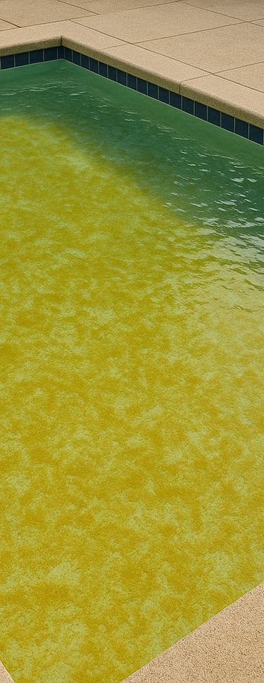 Appears as yellowish-brown patches, usually on shaded areas or pool floors. Chlorine-resistant and easily mistaken for dirt or staining. Requires specialized algaecide and aggressive brushing.